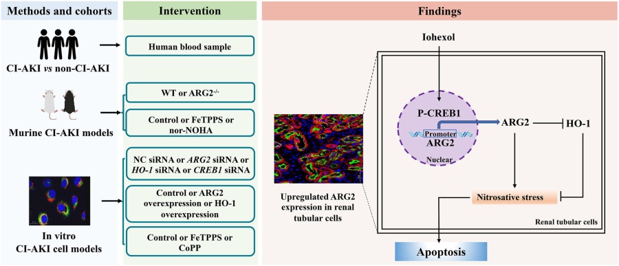 碘对比剂肾病(又称碘对比剂诱导的急性肾损伤)为医源性急性肾损伤的第三大病因,已成为影响我国居民健康的重要病因。但碘对比剂肾病的发病机制尚不明确,缺乏特异性的防治措施,因此阐明碘对比剂肾病的发病机制对寻找其有效的干预靶点至关重要。该研究基于多组学研究方法首次发现了精氨酸酶2在碘对比剂肾病小鼠肾小管线粒体中大量富集,并揭示其可通过诱导硝化应激致肾小管上皮细胞损伤,是碘对比剂致肾损害的重要靶点,为碘对比剂肾病的精准防治提供了全新思路。