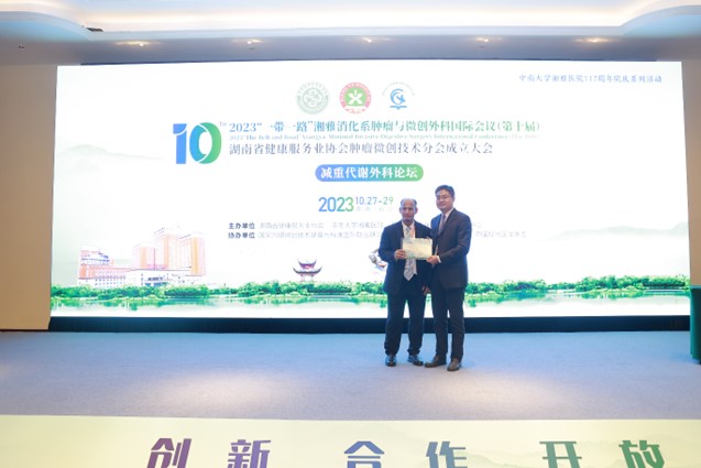 10月27-29日,2023"一带一路"第十届湘雅消化系肿瘤与微创外科国际会议”在长沙举行,湘雅三医院胃肠外科II科成功组织减重与代谢外科国际热点论坛,反响强烈。11月6日,基于对医院减重代谢外科诊疗的高度肯定,巴西减重代谢外科Mottin等专家再次专程组织巴西减重代谢外科团队来医院参观学习交流。