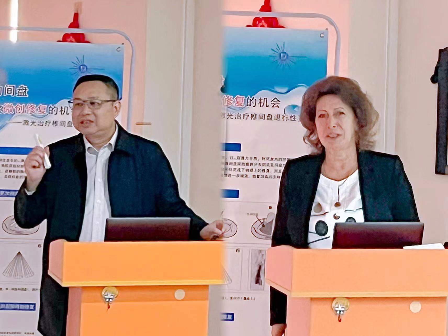 奥莉加教授是椎间盘激光修复术创始人鲍里斯教授的得意门生,曾于俄罗斯科学院远东分院任神经外科医师,目前为海参崴Prima医疗中心教授。奥莉加在颈腰椎间盘激光修复技术领域深耕数十载,已经获得多项俄罗斯联邦和国际授权专利,发表多篇高水平论文,在国际疼痛医学界具有重要影响力。她在本次研修班中通过详实的基础和临床研究证据介绍了椎间盘激光修复术的治疗原理、适应症及操作规范,通过手术演示观摩,讨论,研修班学员受益匪浅。