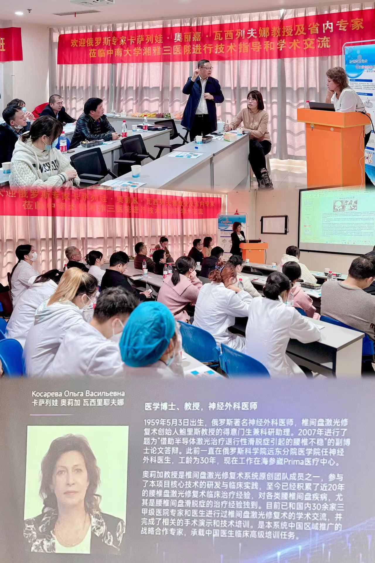 11月30日,中南大学疼痛医学研究所“椎间盘激光修复治疗研修班”在湘雅三医院外科楼15病区顺利召开,此次研修班由疼痛科主办,邀请了俄罗斯著名神经外科教授卡萨列娃·奥莉加·瓦西里耶夫娜进行课程讲授。来自全省各医院脊柱外科和疼痛科代表30余人参加了本培训班。