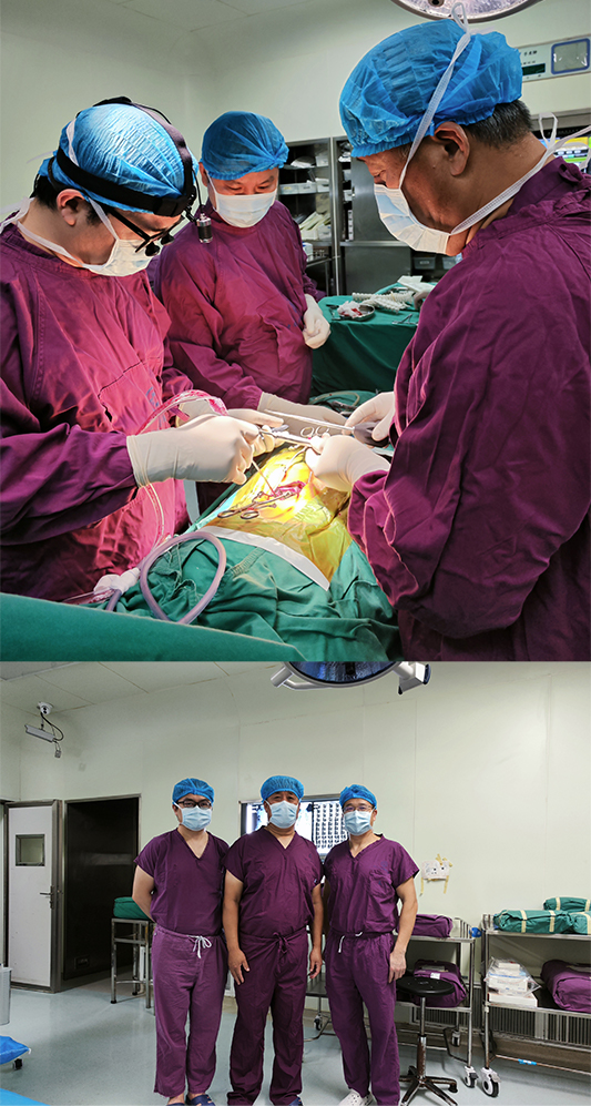 首先,邓幼文主任向仉建国教授介绍了科室的规模和布局以及文化建设。随后,邓幼文主任与仉教授沟通了关于人才培养和交流相关合作事宜。期间,仉建国教授对脊柱外科浓厚的文化氛围大加赞赏,同时表示北京协和医院骨科愿与湘雅三医院脊柱外科在人才培养和学术交流上加强合作。最后,邓幼文主任带领的新湘雅脊柱侧弯团队携手湘雅三医院客座教授、北京协和医院骨科主任仉建国为一位先天性脊柱侧弯患儿顺利完成半椎体切除+脊柱矫形手术。
