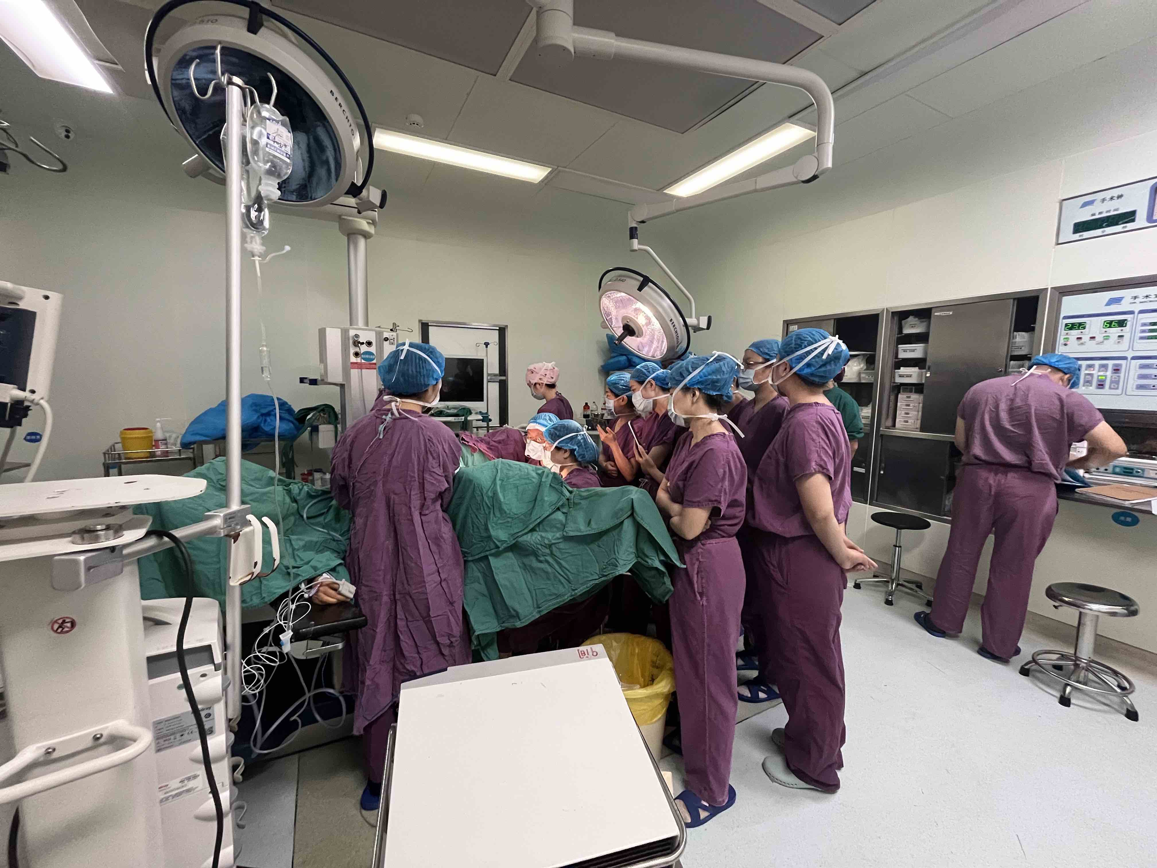 随后,曾飞在现场演示了一例机器人子宫双附件切除及阴道骶骨固定术、一例全盆底重建+阴道后壁修补术、一例前盆底重建+阴道后壁修补术和两例TVT-E术,手术都流畅完美,总用时仅3.5小时。潘琼副教授展示了一例腹腔镜下侧腹壁悬吊术。在六台盆底手术的演示中,将理论与实践相结合的教学方式,让学员们在扎实掌握理论知识的基础上,能够更直观地了解手术操作的细节。