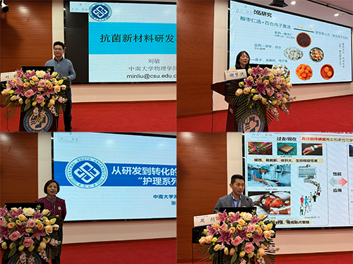 大会特邀美国耶鲁大学Joanne Iennaco教授、湖南省生物材料学会肖涛教授、中南大学何庆南教授、中南大学张静平教授、湖南中医药大学谢梦洲教授、中南大学刘敏教授、湖南大学周剑教授等国内知名学者,分别围绕“护理新材料研发与器件应用”“生物新材料发展浪潮”“护理人文与创新”“从研发到转化的时间管理标签打印机”“从研发到转化的快乐饼干”“抗菌新材料研发与制备”“医工交叉新材料研发”等主题进行了深入交流,展现了护理新材料通过学科交叉从基础研究到临床转化的全链条创新模式。大会邀请到湖南大学附属医院(湘潭市中心医院)成放群教授、中南大学湘雅医院易开桂老师和中南大学湘雅二医院周雯教授、中南大学湘雅三医院谢建飞教授等介绍护理新材料研发经验。论坛由中南大学湘雅医院张京慧教授,湘雅三医院秦春香教授、易琦峰教授、张秋香教授、王莎副教授,以及湖南省人民医院赵琳副教授、湖南省第二人民医院李梅枝教授、湖南省肿瘤医院卢雯副教授、湖南省儿童医院易银芝副教授、湘雅护理学院罗媛慧副教授等担任主持和点评嘉宾。