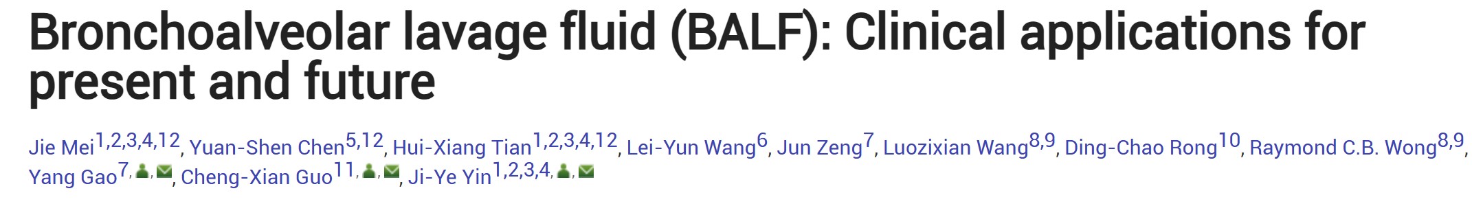 中南大学湘雅三医院临床试验研究中心主任郭成贤,与中南大学湘雅医院临床药理研究所尹继业教授团队,湘雅医院胸外科高阳教授团队合作,在《The Innovation Medicine》上发表题为“支气管肺泡灌洗液:当前及未来的临床应用(Bronchoalveolar lavage fluid (BALF): Clinical applications for present and future)”的综述文章。湘雅医院2021级博士研究生梅杰,硕士研究生陈远深与博士研究生田回香为论文并列第一作者。