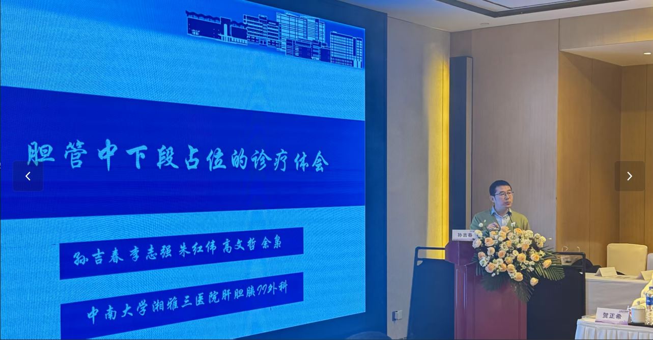 在巡讲过程中,湘雅三医院肝胆胰外II科的团队成员毫无保留地分享了丰富的临床经验与前沿技术成果。余枭教授凭借其深厚的学术底蕴以及多年丰富的临床实践经验,对胰腺肿瘤微创治疗的最新进展展开了深入浅出的讲解。特别是机器人及腔镜手术在胰腺肿瘤治疗中的创新应用,其不仅剖析了技术原理,还结合实际案例阐述了其优势与成效,为与会者开拓了全新的诊疗思路,提供了别具一格的视角。孙吉春副教授则另辟蹊径,结合典型临床病例,对胆管中下段肿瘤的诊疗策略进行了细致入微的解析。从疾病诊断的关键要点,到不同治疗方案的利弊权衡与选择依据,孙教授都给出了极具实操性的建议,这无疑为基层医生在面对此类病症时提供了珍贵的实践经验参考,助力他们提升临床应对能力。李志强博士、朱红伟博士、陈浪博士、刘云飞博士等专家,聚焦重症胰腺炎、中晚期胰腺癌等疾病,从干预的黄金时机、综合治疗方案的优化升级,再到各类新技术在实际治疗过程中的具体应用等多个维度,进行了全面而深入的阐述。他们的分享内容充实、案例翔实,让株洲地区的医疗同仁们充分汲取到专业领域的前沿知识,仿佛置身于一场干货满满的学术盛宴之中。作为积极的回应,株洲市中心医院的罗丽教授分享了国产抗癌药物伊立替康脂质体从二线用药逐步崛起成为一线用药的历程。罗教授的分享,不仅让大家对国产抗癌药物的发展有了更深入的认识,也为药物临床应用提供了新的思考方向 。