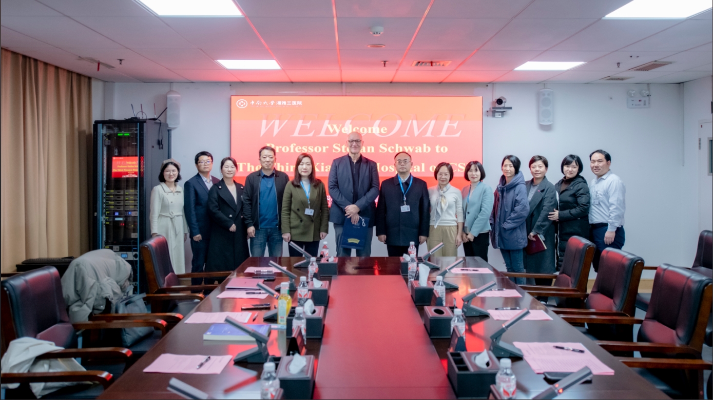 3月10日下午2点,德国埃尔兰根大学医院神经内科主任、德国卒中学会主席Stefan Schwab教授到访湘雅三医院。Schwab 教授应邀专程前来,围绕卒中防治与学术研究开展深度交流活动。湘雅三医院院长江泓、副院长左笑丛亲切会见了 Schwab 教授,国际合作与交流办、学科建设与规划办公室、神经内科、神经介入亚专科等多部门负责人,部分医务人员代表共同参加交流会,会议由神经内科主任张如旭主持。