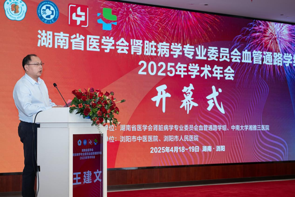 4月18日,由中南大学湘雅三医院主办、浏阳市人民医院及浏阳市中医医院承办的“湖南省医学会肾脏病专业委员会血管通路学组2025年学术年会”在浏阳隆重召开,会议旨在提升医护人员对尿毒症患者血管通路治疗的认知与技术提升,推动湖南省血液净化及血管通路技术的发展,增进学术交流与合作。开幕式由肾病风湿病科副主任兼血液净化中心主任、湖南省医学会肾脏病专业委员会血管通路学组组长王建文主持。
