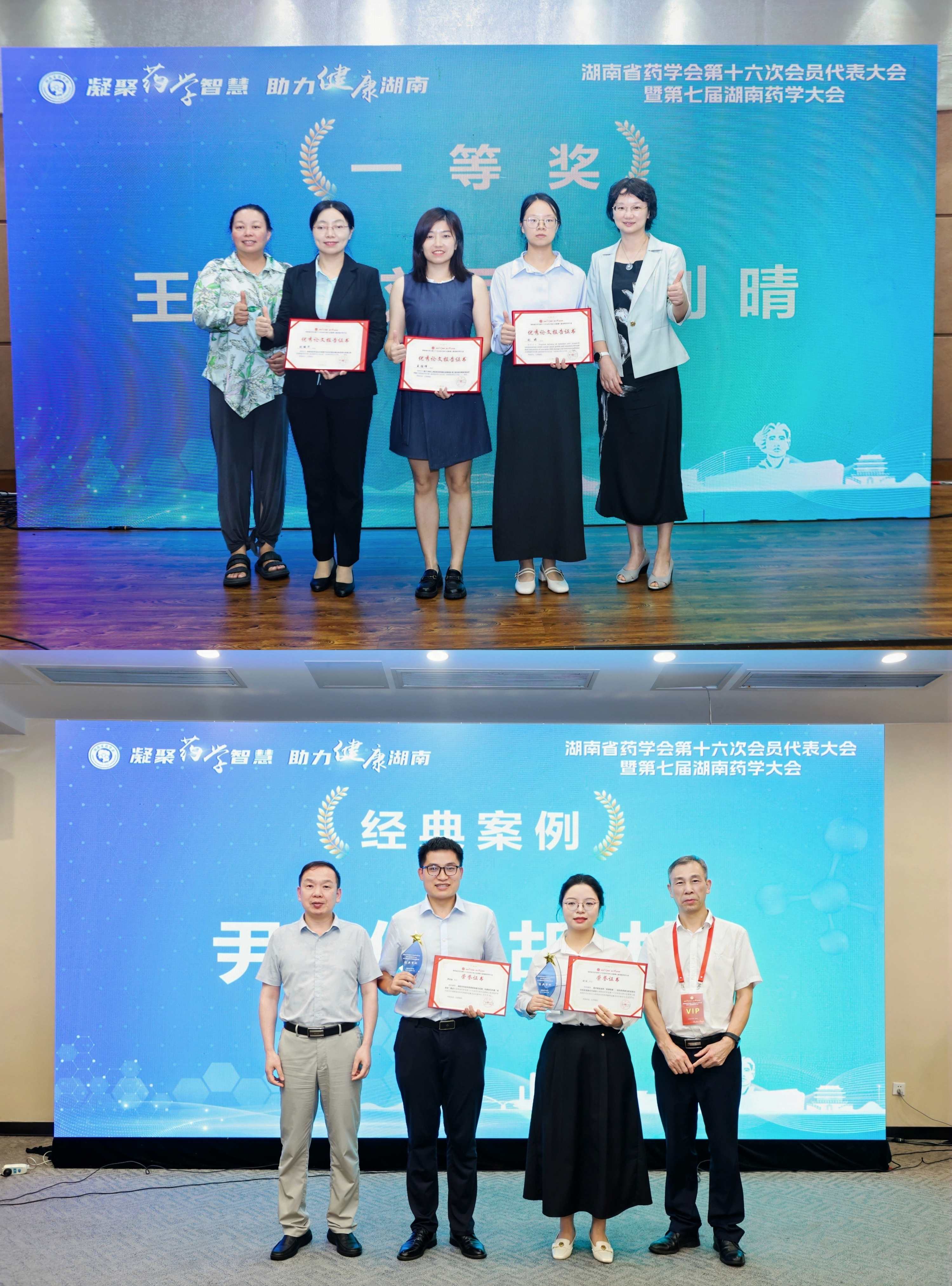 其中,左笑丛教授当选湖南省药学会第十六届理事会副理事长;药学部作为湖南省药学会药物临床评价与研究专业委员会的主委单位荣获湖南省药学会“先进单位”称号;邓珍珍副教授在“湖南省优秀药师”评选活动中获“第七届湖南省优秀药师”称号;王胜峰副教授以《基于三氧化二砷的纳米药物通过自噬抑制-焦亡激活途径增强肝癌化疗疗效》为题做报告,荣获大赛一等奖;尹文俊主管药师在“2025湖南省驻科药师案例征集活动”中以第一名的成绩获“经典案例”奖,并将作为湖南代表参加中南地区案例征集活动。