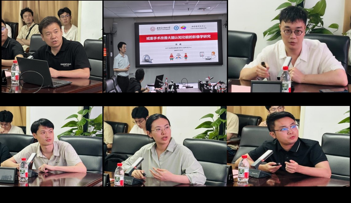 李翔教授结合自身丰富的科研实践经历及广泛的国际合作交流介绍了团队近年来在分子影像学、靶向分子探针在疾病的诊断和治疗中的应用等领域的一系列代表性工作;张毅教授介绍了基于MRI影像对肥胖人群及减重手术干预下的大脑认知功能调控机制研究方面的研究成果,揭示了减重手术对脑功能网络重塑的潜在影响,并提出了相应的神经调控与后续治疗策略,具有重要的临床转化价值;薛嵩博士以前列腺癌为例,系统阐述了多模态人工智能在诊疗一体化的应用及在核素剂量学中的应用,为推动核医学精准治疗提供了技术支撑;朱璟熠博士分享了其发表于《Nature》杂志的最新研究成果,详尽讲解了基于深度学习驱动的蛋白从头设计方法,证明膜内配体与跨膜蛋白之间的相互作用可被精准设计,为新型功能性跨膜蛋白的构建奠定了理论基础;王泽阳博士围绕肥胖治疗的挑战与发展趋势展开报告,展示了其关于减重手术后肥胖患者有机代谢谱变化的系统研究,为肥胖干预的机制研究提供了重要线索;文思杰博士则聚焦于前列腺癌靶向治疗,介绍了其利用双示踪剂分子影像与剂量学分析预测[177Lu]Lu-PSMA治疗转移性去势抵抗性前列腺癌(mCRPC)疗效的研究工作,为提升个体化治疗效果提供了有力支持。
