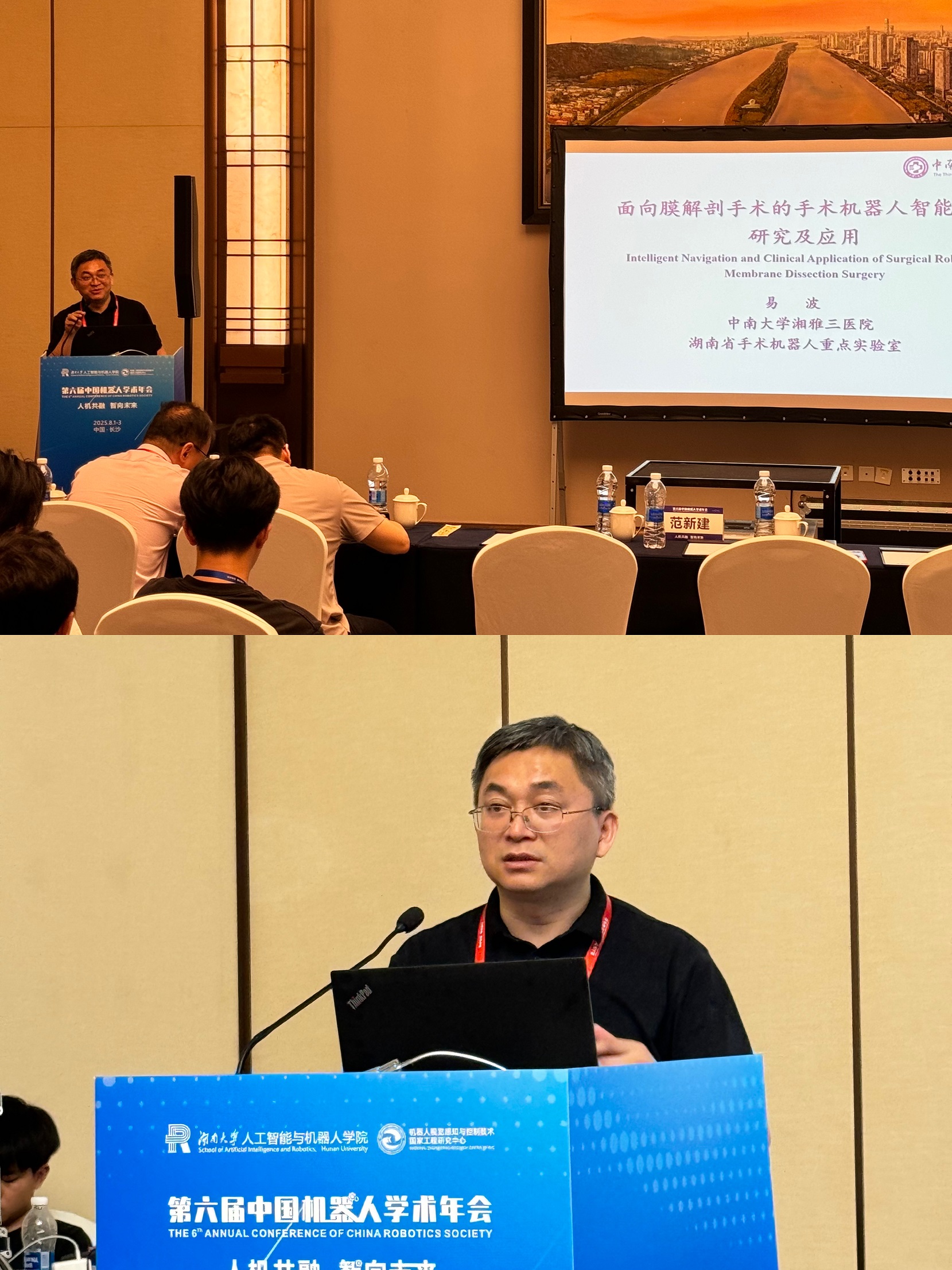 2025年8月3日,第六届中国机器人学术年会(CCRS 2025)在湖南长沙国际会议中心隆重举行。中南大学湘雅三医院胃肠外Ⅱ科主任、湖南省手术机器人重点实验室主任易波教授受邀参会,并在大会“医疗与微纳机器人论坛”环节作了题为《面向膜解剖手术的手术机器人智能导航研究及应用》的主题报告,向全国同行展示了医院在“医工交叉”领域的创新探索成果。