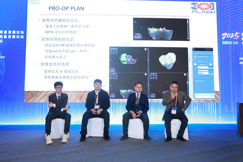 在大会的专题讲座环节,曹旭副主任医师进行了题为“膝关节外侧间室OA的手术抉择与要点”的报告,系统阐述了他针对膝关节外侧间室骨关节炎进行单髁置换手术的独到心得与操作精髓;随后,他作为讨论嘉宾深度参与了关于“机器人辅助膝关节外科”的专题研讨,就新技术应用、并发症防治及新适应症拓展等议题参与了深入的病例分析与交流。在次日举办的ASCH保膝培训班中,他进一步以“固定单髁手术操作要点”为主题,与参会同道分享了该术式的关键技术与操作规范,其报告内容引发了现场热烈反响,多位专家和与会代表在会后围绕手术细节与操作要领同他进行了富有成效的深入探讨。