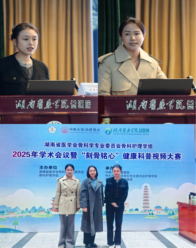 2025年12月4日至6日,湖南省医学会骨科学专业委员会骨科护理学组2025年学术会议暨“刻骨铭心”健康科普视频大赛在湖南怀化举行。湘雅三医院骨科及脊柱外科护理团队携多项实践成果参会并分享,会议汇聚全省骨科护理骨干及业界同仁,围绕医学人文、临床实践、护理管理与教育等前沿领域深入研讨,全方位展现骨科护理新理论、新技术与新成果,助力骨科护理事业高质量发展。