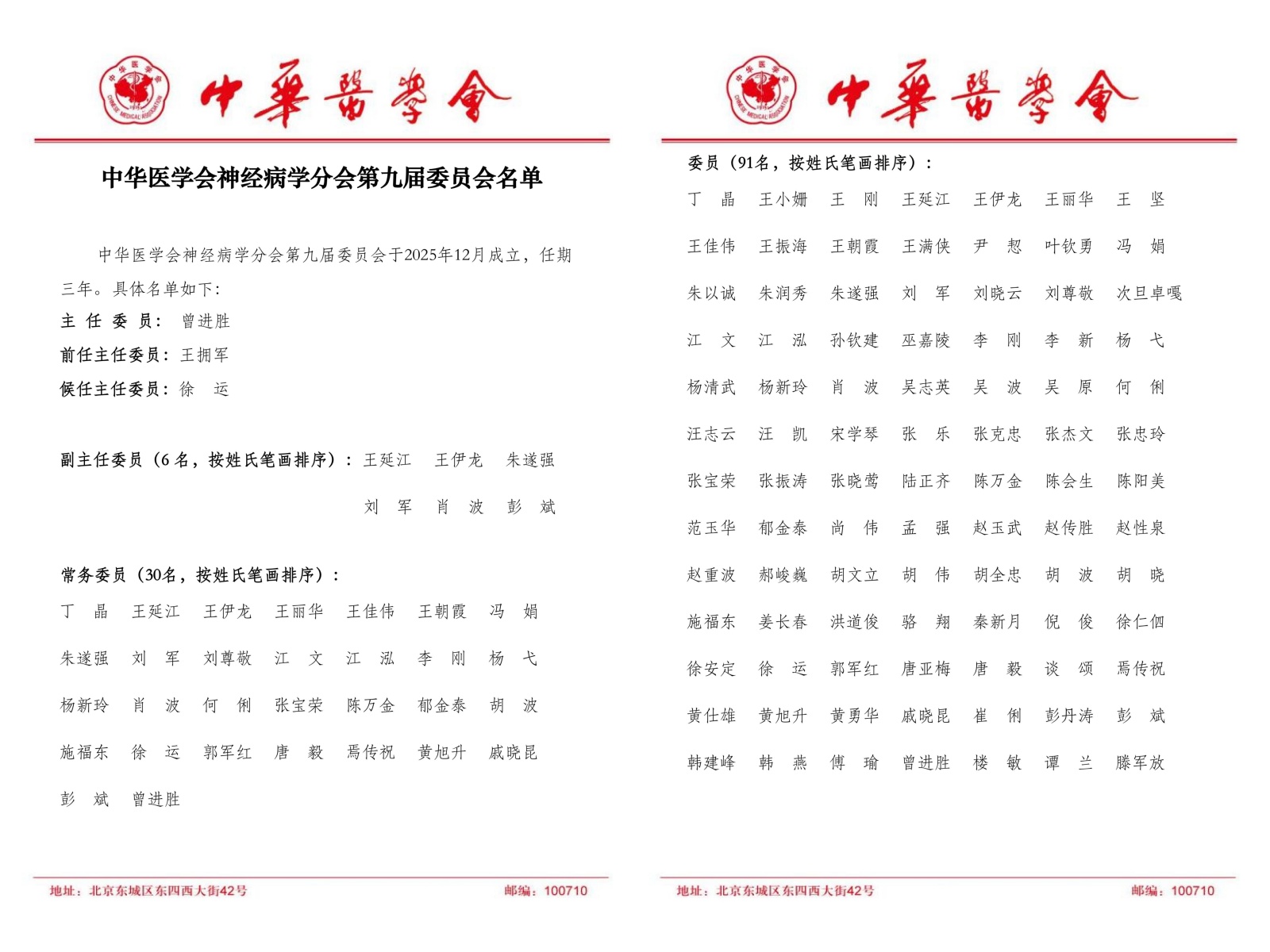 近日,中华医学会神经病学分会完成第九届委员会换届选举,中南大学湘雅三医院院长、神经内科专家江泓教授当选为常务委员。这一荣誉不仅是对江泓教授深耕神经病学领域多年所获成就的高度认可,也彰显了中南大学湘雅三医院神经内科学科建设的显著成效与重要进展。