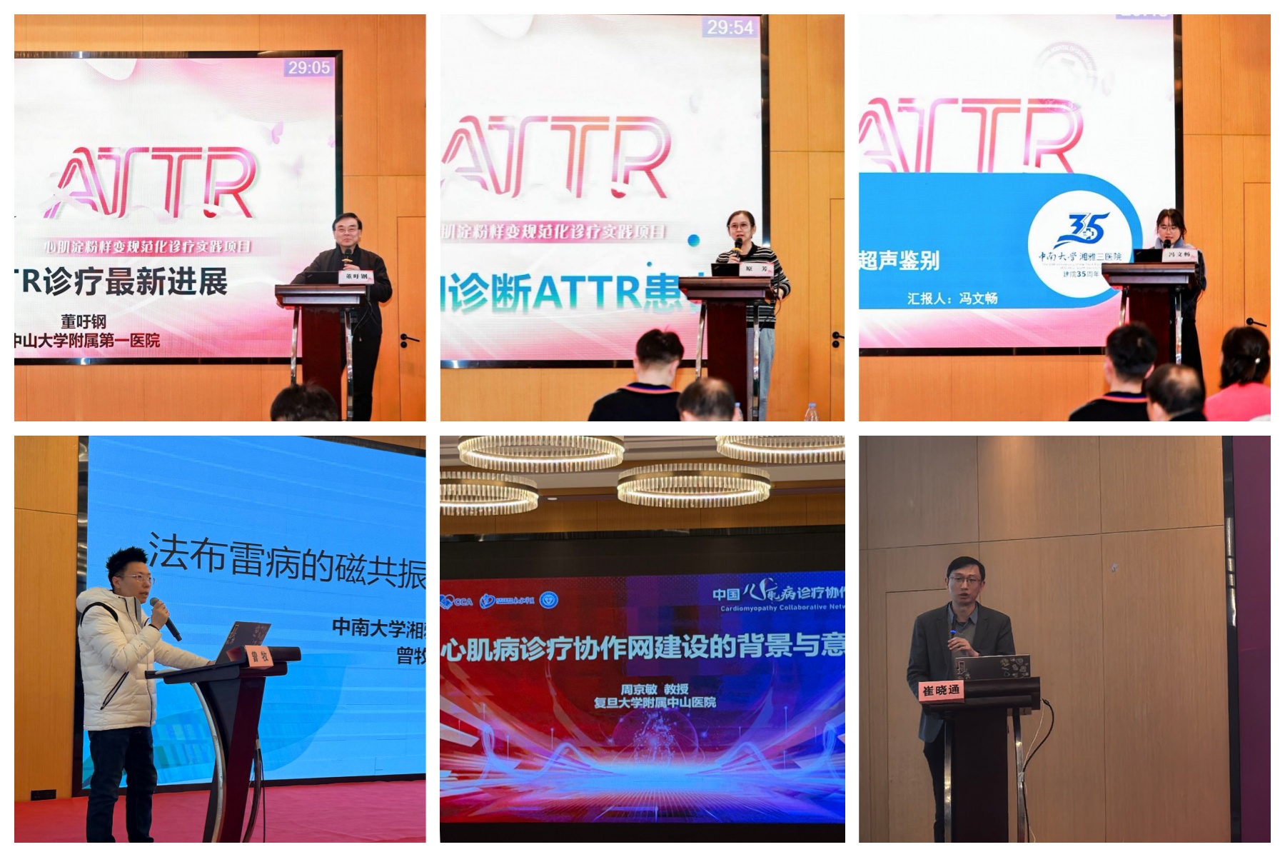 转甲状腺素蛋白淀粉样变心肌病(ATTR- CM)学术专题环节同样精彩纷呈,中山大学附属第一医院董吁钢教授、阜外华中心血管病医院原芳教授、中南大学湘雅三医院冯文畅教授分别就《ATTR诊疗最新进展》《如何识别和诊断ATTR患者》《异“厚”同声:多病因心肌肥厚的超声鉴别》主题开展精彩分享,耒阳市人民医院周晨育、岳阳市人民医院罗平、湖南省人民医院崔波、长沙第四医院金静、邵阳市中心医院贺琳、湖南医学院第一附属医院俞家贤也围绕心肌病中心建设话题展开热烈交流,各抒己见,为临床实践提供了宝贵的思路与建议。