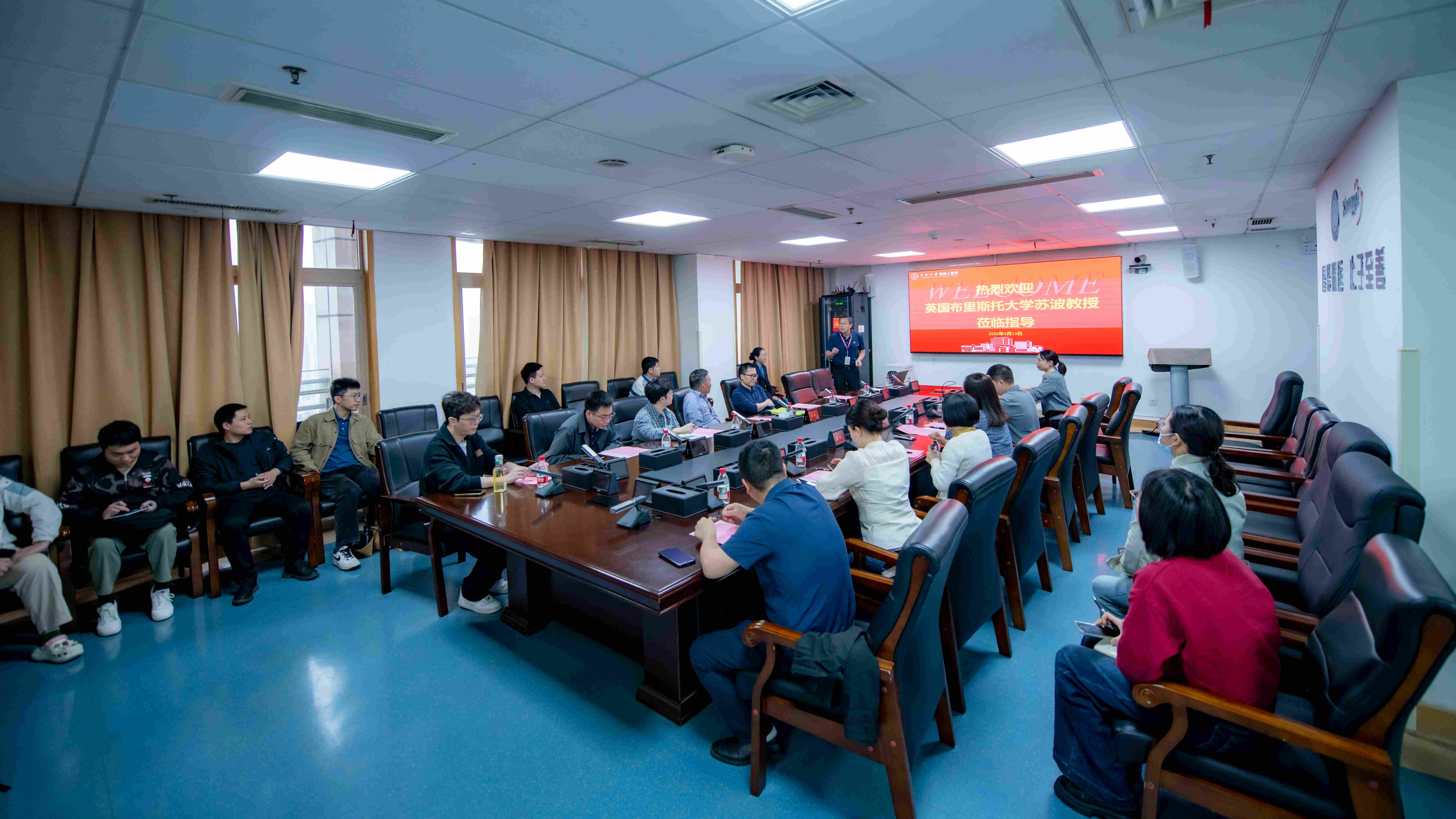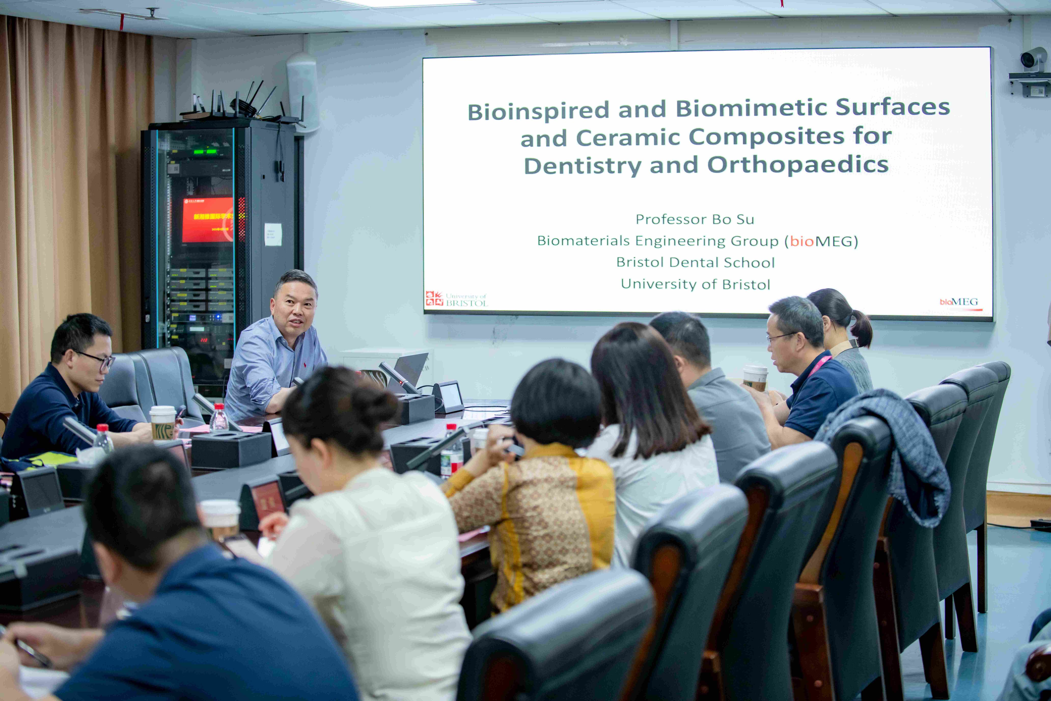 4月13日下午,“新湘雅”国际学术交流会在中南大学湘雅三医院外科楼19楼会议室举行,英国布里斯托大学苏波教授应邀来院进行学术访问与交流。湘雅三医院副院长左笑丛教授出席会议,脊柱外科主任邓幼文教授主持活动。医院国际合作与交流办、科研部、学科建设与规划办公室等职能部门负责人,脊柱外科、骨科与材料相关专业医生代表及研究生代表参会。