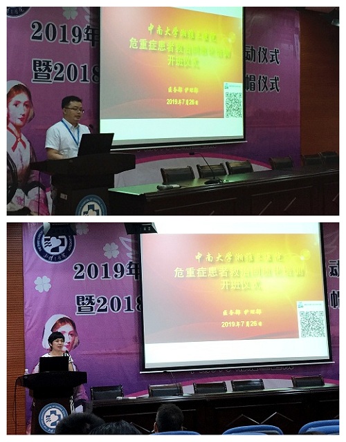 在开班仪式上,张翼主任首先祝贺同质化培训的顺利开班,并结合医院当前医疗情况,充分肯定了同质化培训的必要性和迫切性,希望各参训学员能借此机会认真学习,提升危重症患者综合救治能力。严谨主任围绕医院第四次党代会上明确指出的“打造互联网+护理湘雅模式,建设高素质应急护士队伍”,“打造2-3个专科护理品牌,并出台行业标准或规范2-3个”及“护理科技影响力排名力争进入全国前20名”等医院发展目标,对学员们提出了学习要求并予以鼓励。