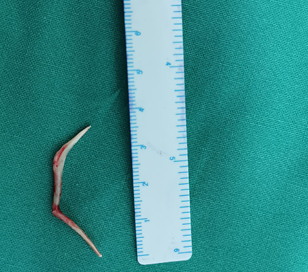 (图为手术取出的鱼刺)