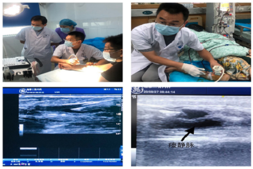 同时,当动静脉内瘘遇见一些特殊情况,如肥胖、水肿患者血管无法扪及,内瘘使用初期血管壁薄,直径小等造成穿刺困难时,针对这些疑难穿刺,可以实行B超引导下确认穿刺部位,做到一次穿刺成功。B超引导下辅助穿刺,能够大大提高疑难穿刺成功率、减轻病友痛苦、改善患者的血液透析体验并减少并发症的发生。