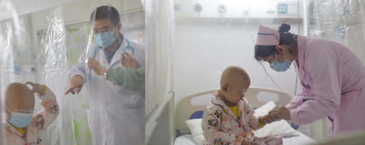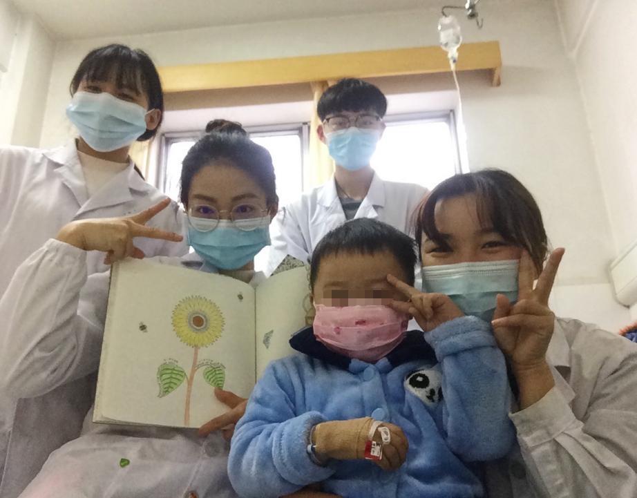 此外,儿科还构建了“医-护-社工”三位一体的治疗模式,医护治身,社工治心。医务社工从患儿家庭角度出发,前往参与病房陪伴,通过绘画、游戏、读绘本为其移植前后进行舒缓治疗,通过人文关怀来减轻心理压力,输送信心,为患儿营造有温度的就医环境。