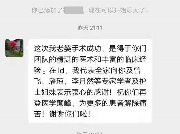 患者刘某,60岁,4年前因子宫脱垂严重影响生活质量,多次就诊于省内各大医院,但因患者2次脑梗、肥胖(BMI:34.6kg/㎡)、高血压、糖尿病等复杂病情、手术难度大、风险极高均不建议手术。因此患者4年来一直备受此病困扰,生活质量急剧下降。2021年4月,因得知曾飞教授擅长盆底功能障碍性疾病的诊治慕名来中南大学湘雅三医院妇科就诊。经术前充分评估,内分泌科、神经内科及麻醉科多学科协作诊疗,4月20日由曾飞教授主刀行达芬奇机器人辅助腹腔镜下全子宫切除+双侧附件切除+阴道骶骨固定术。术后在19病区全体医护人员的精心护理下恢复良好,并顺利出院。