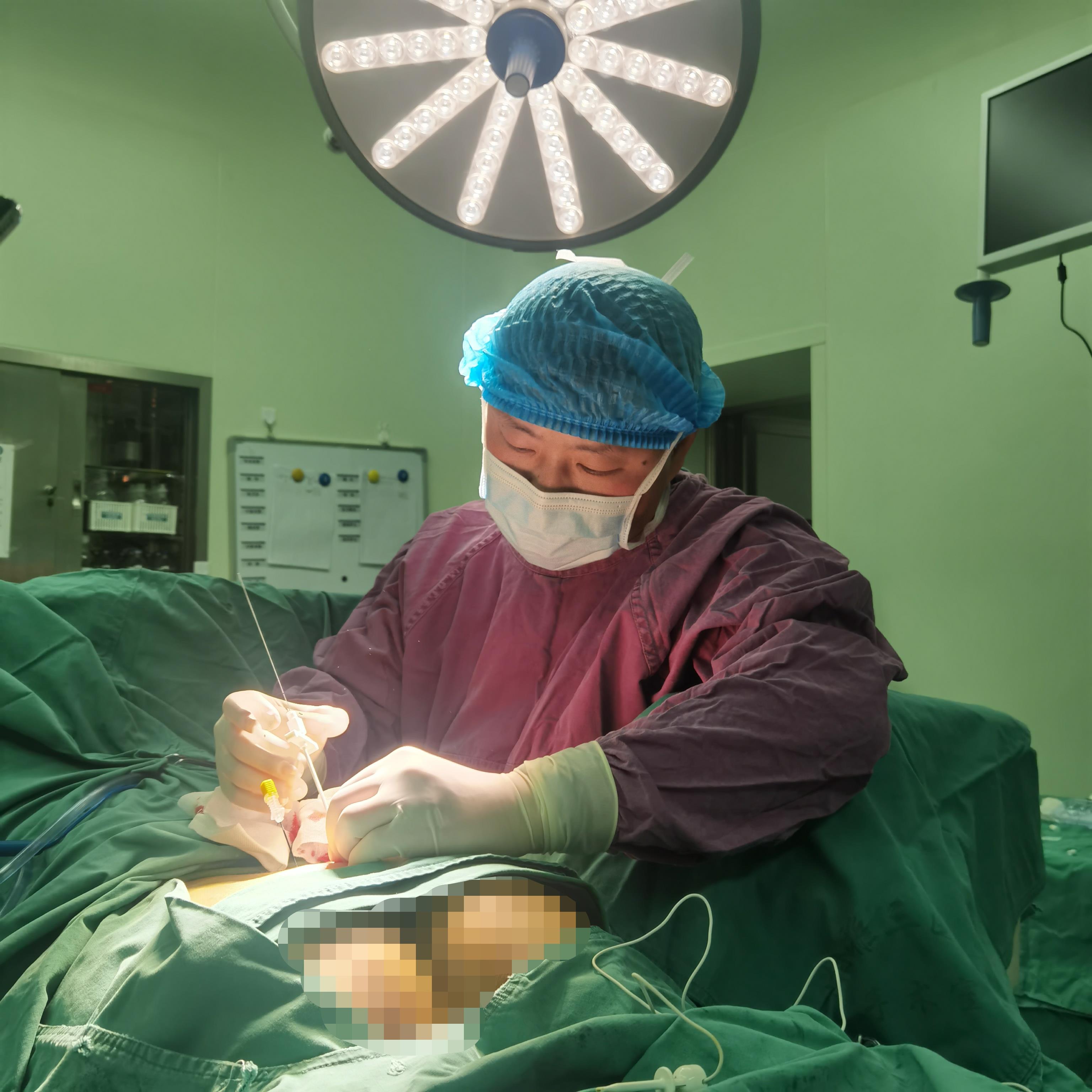 74岁的刘嗲嗲8个月前脊柱手术后开始出现排尿费力、反复尿潴留,需长期留置导尿管,生活质量严重下降。为解决排尿障碍,刘嗲嗲进行过各种保守治疗,但效果不佳。经湘雅三医院泌尿外科尿控专家汤进综合评估,诊断其为神经源性膀胱,属于非梗阻性排尿功能障碍。该类疾病情况复杂,临床表现多样化,常规治疗效果不理想。骶神经调控术是近几年开展的新型治疗技术,对于该类疾病有独特的疗效。与患者及家属充分沟通后,12月4日汤进副教授在局麻下为患者进行了“经皮骶神经刺激I期手术”。