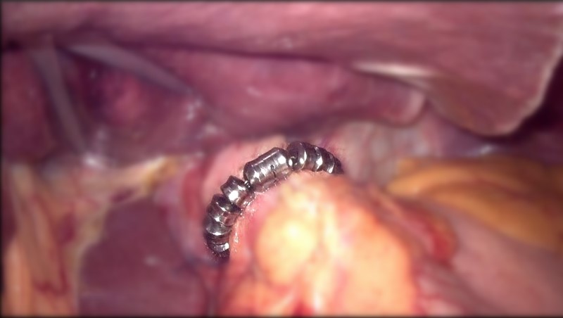 接诊后,李小荣团队决定为其实施“腹腔镜下抗胃食管反流装置植入术”。 “传统的胃底折叠术要通过腹腔镜技术在腹部打孔洞,然后使用器械充分的解剖胃食管交界区域,折叠胃底胃壁,以起到食管下段加压作用。”主治医师林昌伟介绍,“‘腹腔镜下抗胃食管反流装置植入术’节约了一半手术时间,且损伤更小,不改变正常解剖结构,完整地保留了食管、胃底的结构与功能。”