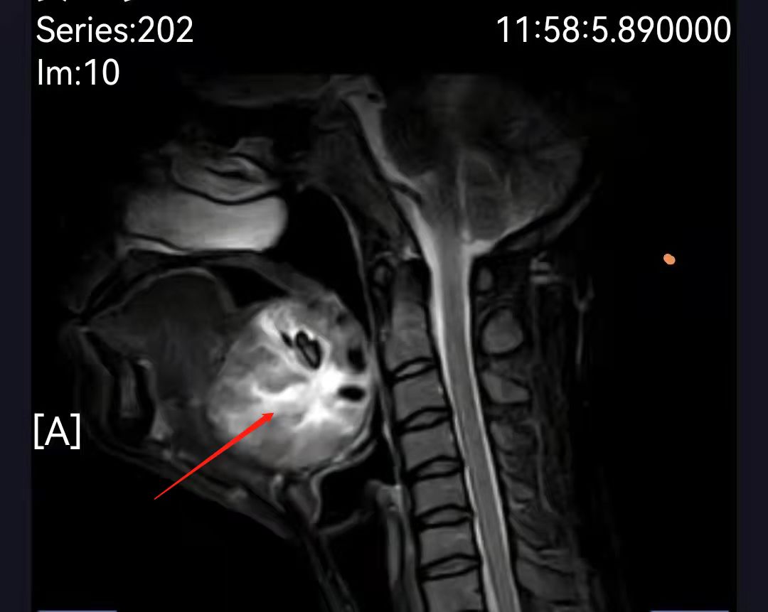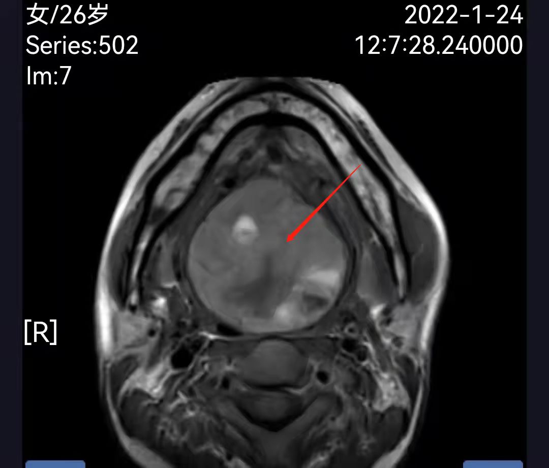 26岁的孕妇谭女士,妊娠28周,年少时曾做过一次甲舌囊肿手术,两年前在一家大医院诊断出“异位甲状腺并血管畸形”,因手术风险大一直保守治疗。患者怀孕后出现甲状腺功能低下合并反复口咽部活动性出血,随孕期增长,出血频率越来越多出血量越来越大,每次达200-300ml,多方就医均因保胎风险太大未行手术。近期舌根部肿瘤迅速长大,患者出现说话含糊、呼吸困难症状,最近一次出血量达500ml,命悬一线,患者被紧急转往湘雅三医院耳鼻喉科急诊入院。