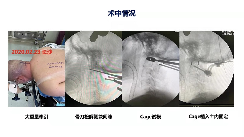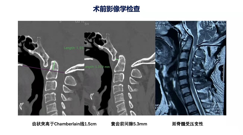 颅底凹陷症属于颅颈交界区常见畸形,表现为枢椎齿状突尖端突入颅内,是一种较为复杂的先天性病理状态。颅底凹陷症合并寰枢脱位,临床分型为A型。脱位后齿状突向后上进入枕大孔内,压迫延髓、脊髓或脑神经,造成感觉、运动、括约肌功能障碍,甚至导致病人死亡,需要手术治疗。邓幼文主任指出:“颅底凹陷症并寰枢椎脱位(A型颅底凹陷症),经后路侧块间松解并植入人工Cage(融合器),这项手术在省内首开先河,标志着科室颅椎团队在上颈椎领域又取得了可喜的进步,处理颅颈椎交界区疾患,多了一种新的选择。”