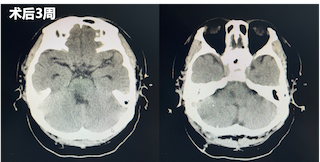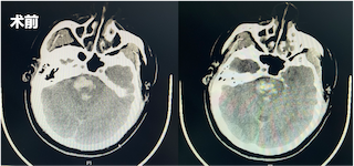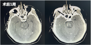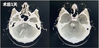 术后一周再次复查CT显示脑干中的血肿明显较前减少。直至三周后,再次复查CT,患者已经没有血肿块,意识较前明显好转,遂转入普通病房继续治疗。在普通病房,患者还同时接受专业的康复训练和中医针灸治疗,患者四肢活动较前好转,目前,已出院至康复医院继续进行康复训练。