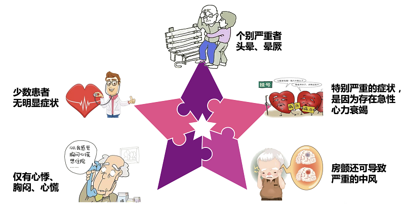 房颤即心房颤动,是指心房“乱发指令”,导致心房各部分的心肌各自为政、杂乱无章地自行收缩,此时心房率每分钟可以快到350-600次,而且毫无规律可言,可能影响整个心脏的正常跳动并进一步引发各种并发症。作为临床上最常见的持续性心律失常,房颤不但能够造成心功能损害,降低生活质量,引起心力衰竭,还是造成心源性卒中的罪魁祸首。房颤使患者中风风险增加5倍,也同时增加痴呆发生率和死亡风险。现有的流行病学资料显示,我国成年人房颤患病率达1.6%,据此估计中国房颤患者已超过2000万,然而知晓率不足七成。