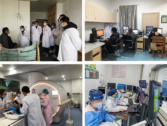 影像学CT检查在患者临床诊断中发挥着极为重要的作用,影像人成为直面疫情第一线的群体。疫情攻坚战期间,在院领导及科主任容鹏飞的指导下,胡鹏志作为技术组副主任,负责监督技术小组成员严格按照规范进行设备、机房消毒工作,严格做好个人防护工作,杜绝病毒在科内传播;规范CT、DR、MR各项检查操作、质量控制。梁琪作为诊断组副主任,负责高效、有序的医疗影像诊断任务的开展;组织学习《新冠肺炎影像学特征与鉴别诊断》等相关知识;协助科主任进行区域划分和环境改造等工作。放射介入病房积极组织医护学习《湘雅三医院新冠诊疗方案》并主动承担收治新冠病人任务。首席专家王维教授不惧感染,每周仍坚持到科室开展大查房、疑难病例讨论及复杂手术指导工作,同时担任湖南省医学会放射学专业委员会主任委员的他指派放射科刘艳、梁琪、彭松、杨晓执笔,经学会专家审阅,第一时间发布了《关于新冠防控新形势下放射科诊疗应对专家建议》,对全省的放射科新冠防控工作做出了及时的指导。