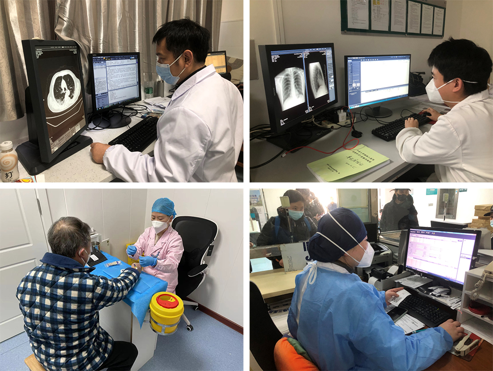 疫情爆发期间,放射科的医师、技师、护士、登记员成了最辛苦的群体,尤其是一线的“小阳人”们都坚持带病上岗。大家中午连班、晚上加班、周末无休,没时间吃饭,没时间喝水,没时间上卫生间,CT机器都累坏了两台。CT组彭松坚持带病上班,作为组长还要解决在人手严重不足的情况下,保证CT检查的有序进行。张雄健经常嘶哑着喉咙在检查室门口呼喊着患者的名字,又耐心的教病人摆好体位。诊断组李臻在高烧39.5℃,身体极度不适的情况下,仍坚持站好最后一班岗,审核完最后一个报告。白血病合并新冠感染的患者在做完CT检查后突发癫痫,总住院陈程迅速到岗处理,患者得到有效处理。登记室陈维即使身体不适,需要吸氧才得以缓解,仍坚守着登记室这一窗口阵地。杨策军在咳嗽、眩晕的双重体验下,仍坚持着防控物资的管理、登记、发放工作,杜绝浪费。“孕妈妈”张娟在36周孕龄并且仍然“阳”着时仍坚持肿瘤病人的细胞培养。在这场疫情防控阻击战中,每个人都成为了“逆行者”“守护者”,都在尽自己的最大能力守护这万家灯火。他们用信念、责任、坚守、担当,书写着一段段动人的故事,一个个感人的温馨瞬间。