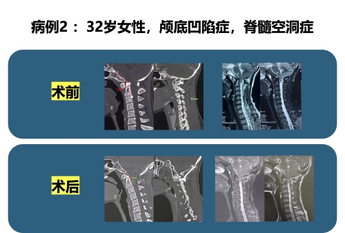 第二位患者33岁的易女士是湖南株洲人,颈部歪斜10余年,右手麻木乏力7年,当地医院考虑为“颅底凹陷症”, 随后建议患者前往中南大学湘雅三医院就诊。患者遂找到脊柱外科颅椎学组李劲松组长,李劲松接诊后诊断为“颅底凹陷症”,该患者同时合并了“Chiari畸形、脊髓空洞症”,神经症状持续加重,手术指征明确。