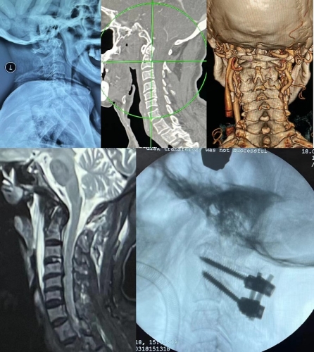 邓幼文、李劲松在接到紧急邀请后,立马进行了远程会诊,在详细了解患者病情后,明确了患者诊断“寰椎Jefferson骨折合并齿状突2型骨折”,并一致认为患者目前的情况已是不幸中的万幸,此类骨折稍有不慎就会导致死亡,为了避免患者出现二次损伤同时为患者争取救治时间,邓幼文主任让当地医师做好术前准备的同时,带领李劲松组长紧急奔赴常宁市人民医院骨外科。