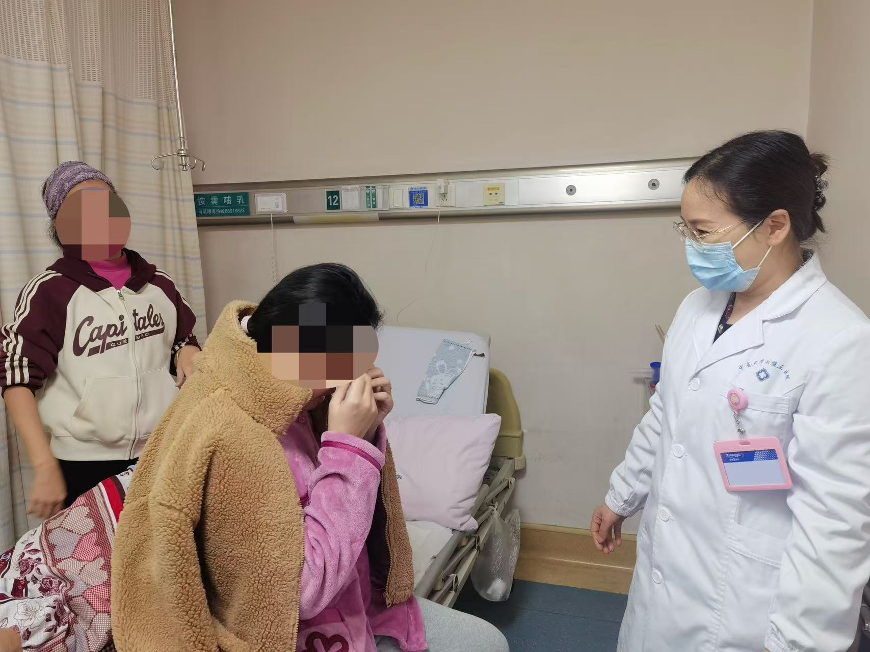 在产科米春梅主任和心血管内科梁中书教授共同指导下,患者顺利妊娠至32周余收治入院,住院后经由产科、心血管内科、内分泌科、泌尿外科、麻醉科和新生儿科等多学科团队协作诊治,于11月15日,由米春梅主任医生主刀为其剖宫产成功助娩一女婴,母女平安。产妇已于11月20日出院,出院前米春梅主任查房,再次予以指导进一步就诊计划及进一步排查副神经节瘤位置。此时,夏女士不由得回想既往就诊的辛酸经历,并感念湘雅三医院全体医护给予的精湛医术和温情关怀,成功让自己如愿当上了母亲,忍不住痛哭流涕。