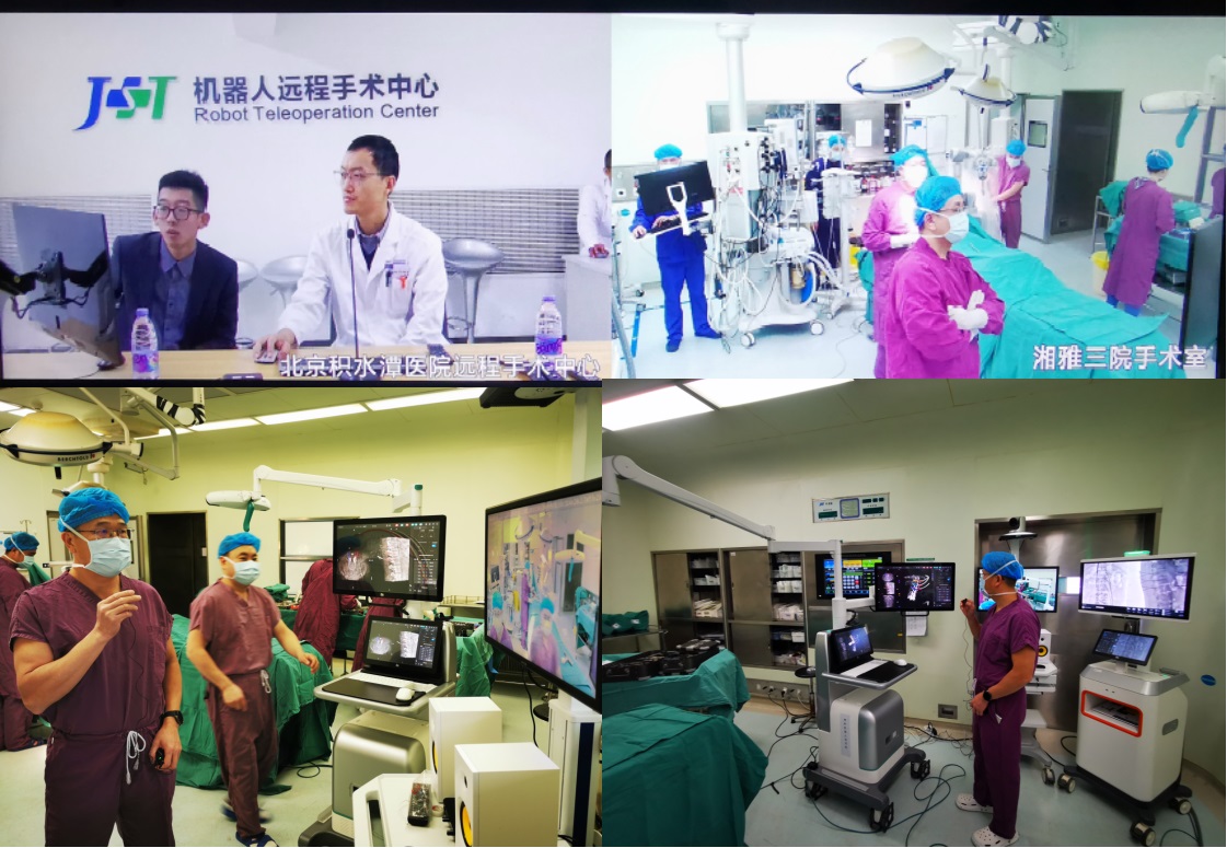 11月29日上午,中南大学湘雅三医院脊柱外科邓幼文教授手术团队采用国产“天玑”机器人,通过5G通信技术与北京积水潭医院机器人远程手术中心实时连线,顺利开展了湖南省内首例远程骨科机器人手术。这是新湘雅脊柱外科继完成湖南省首例“天玑”机器人辅助下的先天性脊柱侧弯矫形手术后,在骨科机器人手术应用领域的又一次突破。