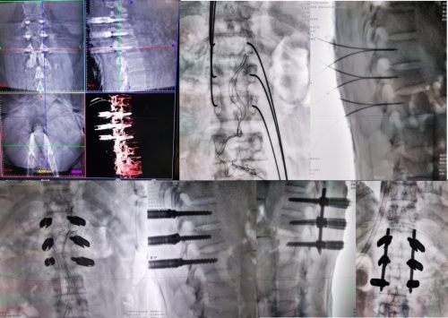 本次接受远程骨科机器人手术的是一位因高处坠落伤导致腰椎多节段爆裂骨折的男性患者,其中尤以L1椎体最严重,骨折块移入椎管内引起脊髓受压,万幸的是该患者没有明显的脊髓损伤表现。为了更微创同时更安全的解决患者病痛困扰,经邓幼文主任手术团队讨论,并与北京积水潭赵经纬主任沟通交流后,决定采用“两地协同,远程机器人诊疗”的方案,由湘雅三医院脊柱外科携手北京积水潭医院机器人远程手术中心,通过5G通信技术结合机器人开展远程手术。手术当天,邓幼文主任、李志跃主任、谭伟主治医师及刘仁峰总住院医师组成了湘雅三医院手术团队与北京积水潭医院赵经纬主任及其团队,在积水潭医院机器人远程手术中心实时连线交流指导,经过两个团队的精诚合作,手术得以顺利的开展,患者麻醉醒来即感痛症状缓解明显,检查并无神经损伤表现。