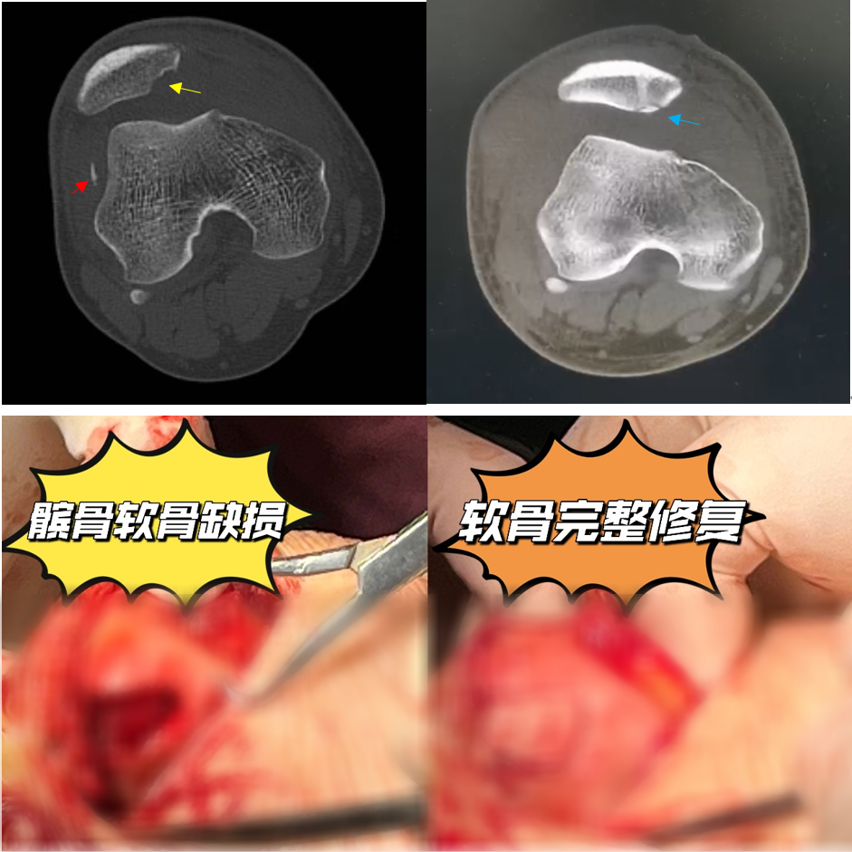 据医生介绍,髌骨软骨骨折常继发于运动损伤后的髌股关节脱位。对于初次髌股关节脱位的患者,保守治疗尚可;然而,若伴有游离骨块,则需手术治疗。若骨折块体积较小或质量较差,通常需手术移除游离骨块,以避免其对关节软骨的进一步损伤;若骨块完整且质量良好,则应积极进行复位内固定,软骨的缺损会导致关节磨损退变和长期疼痛。传统的髌骨软骨骨折复位内固定方法为金属螺钉固定和高强缝线固定等,这些方法虽效果良好,但存在创伤较大、内置物不可吸收及可能需要二次手术取出的弊端。本例手术采用的可再生棒具有植入后能埋入软骨面之下、减少异物刺激及关节炎发生率的特点。其降解周期与成骨周期相匹配,在降解过程中可实现骨生长的完全替代,对软骨损伤小、具有倒齿型全螺纹结构、固定效果可靠,并且无需二次手术取出。与传统方法相比,该技术能够为患者提供更为优良的手术效果及长期的生活质量。
