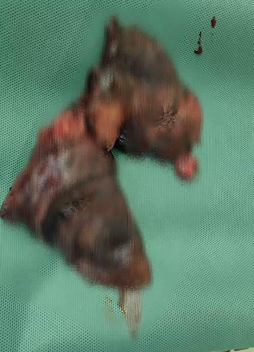 在手术过程中,团队面临着诸多的挑战。由于患者本身患有白血病,肺部病灶达43*36mm,并且病灶靠近肺门血管,胸腔粘连严重,手术操作难度大,风险高,稍有不慎,患者可能出现难以控制的出血及呼吸衰竭等并发症。凭借着丰富的临床经验和精湛的医疗技术,整个手术过程顺利,出血量少,术后患者生命体征平稳。