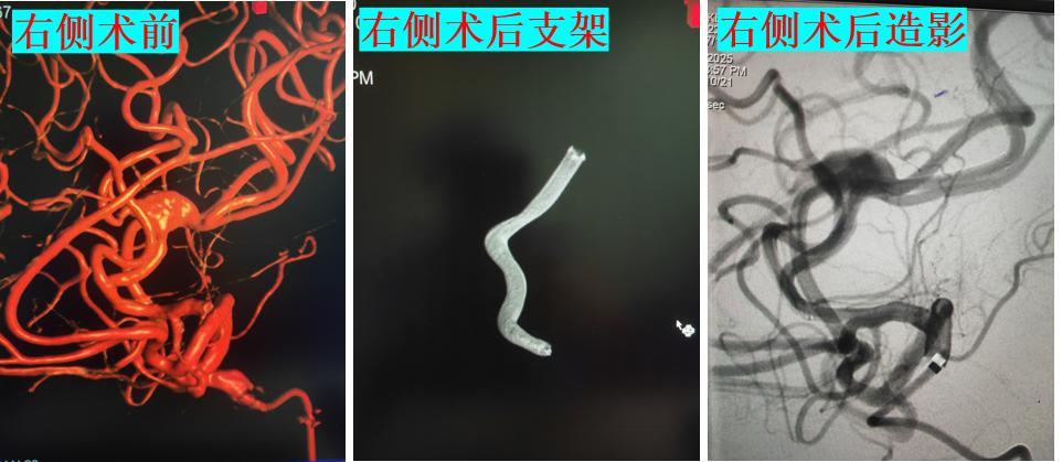 在以往缺乏密网支架技术的时期,此类病例往往需施行搭桥术,先重塑血流再“孤立”动脉瘤,手术创伤大、风险高、时间长。而现在,借助血流导向装置,团队通过微创介入方式,一期植入密网支架,显著简化了手术流程,降低了操作风险,最终成功完成治疗。术后经过神经外科护理团队的精心护理,患者恢复良好,无神经功能损伤,复查显示动脉瘤闭塞效果满意,载瘤动脉重建良好。