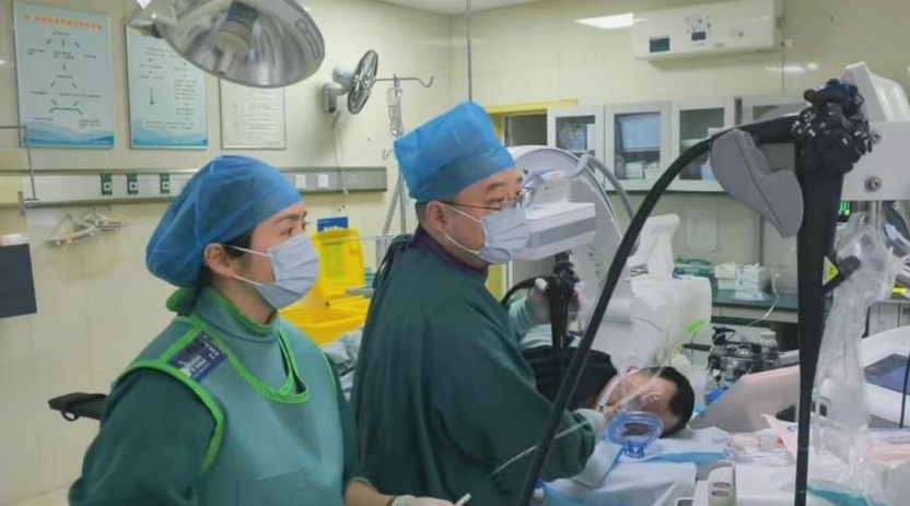 时间就是生命。接到通知后,正在家中新年团圆饭的内镜中心主任邓刚没有丝毫犹豫,立即放下碗筷赶往医院。与此同时,值班护士彭茜茜迅速启动应急预案,麻醉科、手术室同步待命,一场多学科协作的生命保卫战迅速拉开序幕。内镜室里没有春节的欢笑声,没有团圆饭的香气,有的只是监护仪的滴答声和无影灯下忙碌的身影。他们用专业与坚守,为患者打通了生命的通道;用责任与担当,守护着万家灯火的安康。