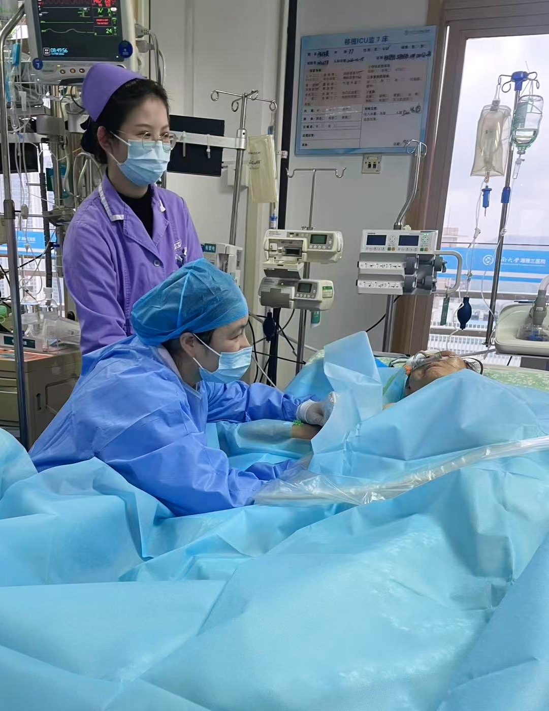 当肝胆胰外科的医护人员忙着为患者送上年味时,医院的另一个战场——移植ICU病房,同样进行着一场关乎新生的无声战役。为了确保移植患者春节期间治疗通道的畅通,肝胆胰外科静疗专科护士阳萍老师,在完成本科室工作的同时,毅然放弃了与家人团聚的宝贵时间,紧急支援移植病房,为患者进行高难度的经外周静脉穿刺中心静脉置管(PICC)。
