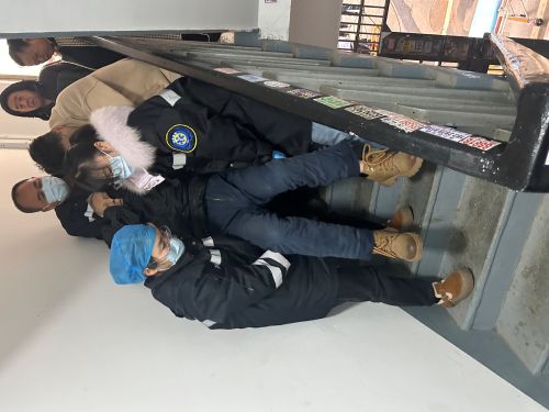 “大家配合好,一、二、三,起!”在狭窄的楼道里,肖艺梅和刘述来弯下腰,用手臂和肩膀架起老人的身体,王建志则在后方托举。由于空间有限,他们只能侧着身子,半蹲着,一级一级缓慢下行。尽管体力透支,但三人咬紧牙关,小心翼翼地保持老人体位平稳。