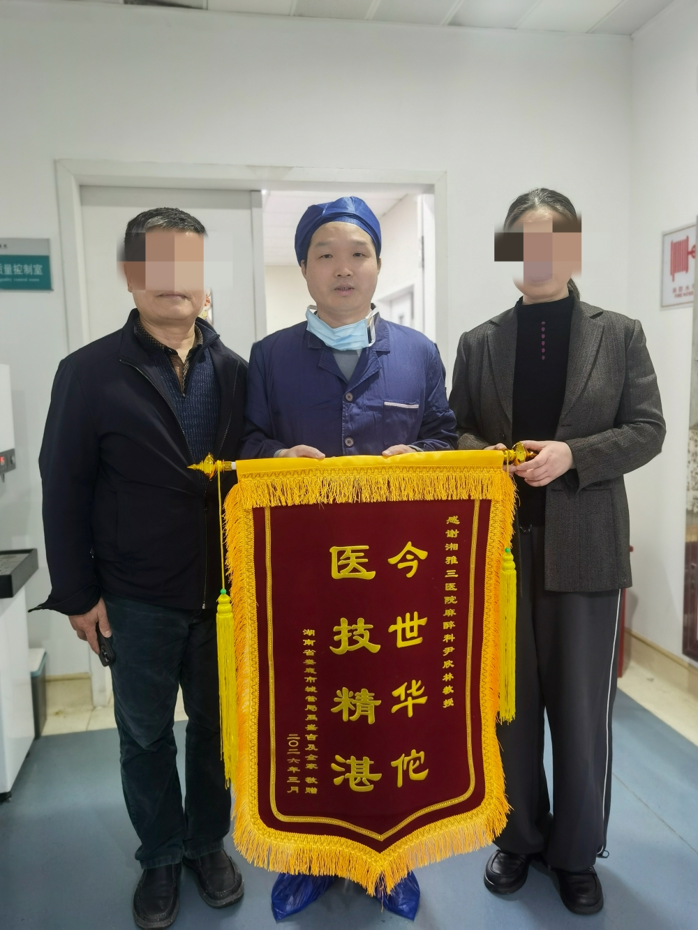 3月23日,一位86岁高龄的左侧股骨颈骨折患者,在辗转多家医院后,于中南大学湘雅三医院成功接受手术治疗。麻醉科尹欣林副教授团队凭借精湛技术,在术中为患者实施单侧腰麻,成功化解了高龄、衰弱、肺部感染等多重风险,让患者平稳度过围术期,为后续康复奠定了坚实基础。术后患者顺利转院,家属特送来写有“今世华佗 医技精湛”的锦旗致谢,充分体现了医院麻醉科在复杂危重患者麻醉管理方面的综合实力。