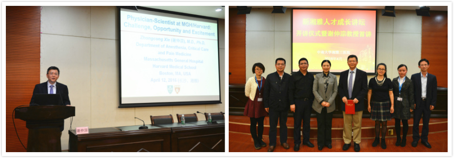 随后,“新湘雅人才成长讲坛”的首讲嘉宾,我院引进的海外高层次人才谢仲淙,做了题为《学者型医生在哈佛:挑战、机遇和激励》的精彩讲座。谢教授介绍了麻省总医院的医疗和科研现状及住院医师管理培训制度。他结合多年的学习、工作和成长经历,与在座师生分享了自身的奋斗历程以及作为一名学者型医生如何平衡临床实践与基础科研的经验体会。在现场互动环节,面对师生们积极踊跃的提问,谢教授都悉心回答耐心讲解,并激励大家把握机遇,迎接挑战。整个讲座内容深入浅出、引人入胜,让每位聆听者都受益匪浅。