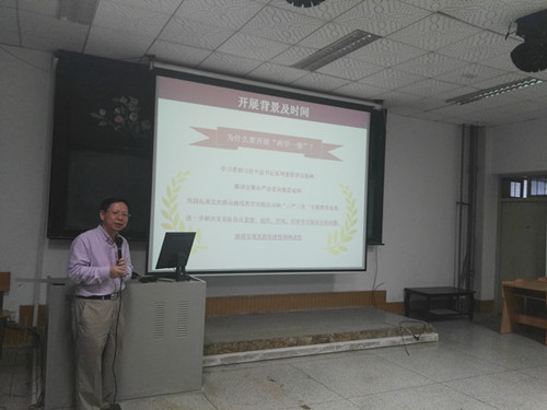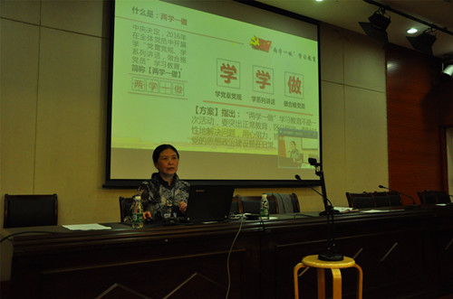 5月25日下午,袁洪教授以“以党章为镜,锤炼党性作风,保持党员先进性”为题,深入系统的围绕“两学一做”开展的背景及时间、“两学一做”的总体要求、增强党员的党性锻炼、全面理解共产党员标准、向榜样向群众学习等方面进行讲解和教育,强调共产党员八项权利和八项义务的重要性。