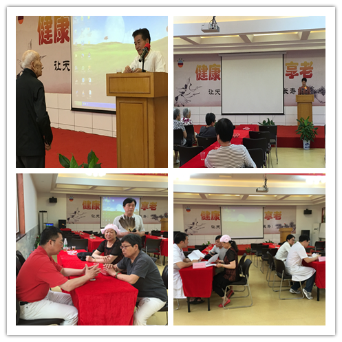 蒋先镇教授为山庄老人作了《老年男性病知识》讲座,老年医学科副主任欧阳茂副教授带领研究生支部4名医学生为老人开展义诊和现场咨询。