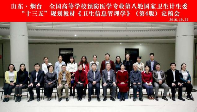 10月22日,我院罗爱静教授主编的全国高等学校预防医学专业第八轮国家卫生和计划生育委员会“十三五”规划教材《卫生信息管理学》(第4版)定稿会在山东烟台顺利召开,会议由滨州医学院承办。