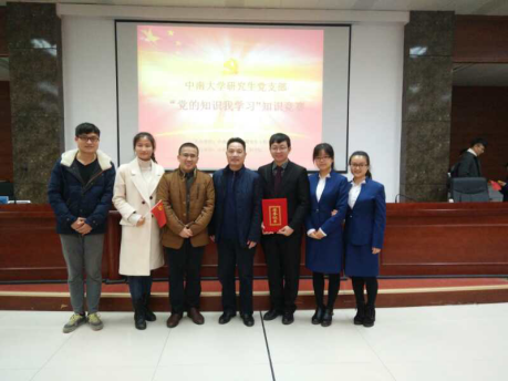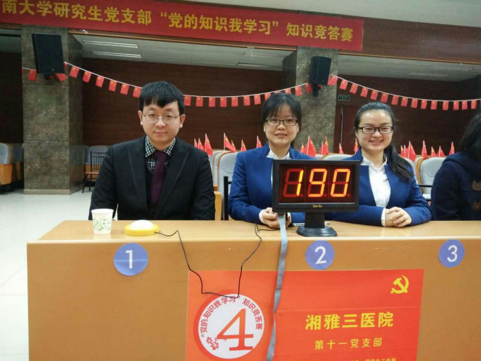 12月9日上午,由中南大学党委研究生工作部和党委组织部共同主办的“党的知识我学习”知识竞赛圆满落下帷幕,我院第十一党支部代表队三战三胜,从全校36支二级学院代表队中脱颖而出,勇夺决赛一等奖。