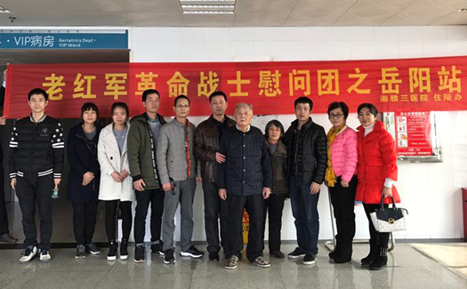 当日下午,经过160公里的长途车程颠簸,住培党小组的党员代表抵达岳阳市一家医院,慰问了老战士卢柏森同志。党员们在卢柏森老同志的病床边听取了他的红色事迹,卢老人家虽年事已高,但依然精神矍铄。